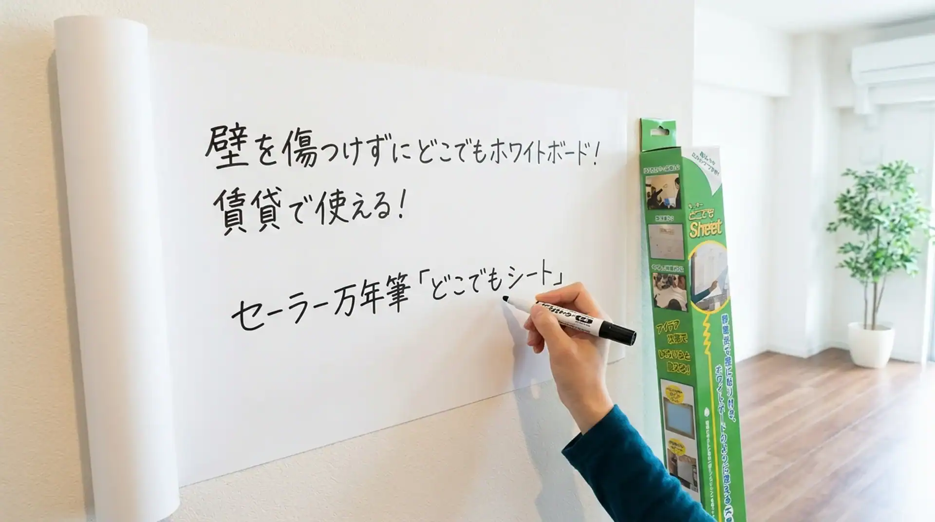 AI時代だからこそ、手書きのアナログな作業の価値が再認識されている。セーラー万年筆の「どこでもシート」を使えば、賃貸でも簡単にホワイトボード環境を整えることができる。